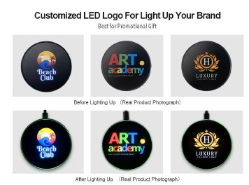 wireless charger with special design FULL COLOR LED light uplogo when use it. The new design wireless charger is 15W Fast Charge On Contact